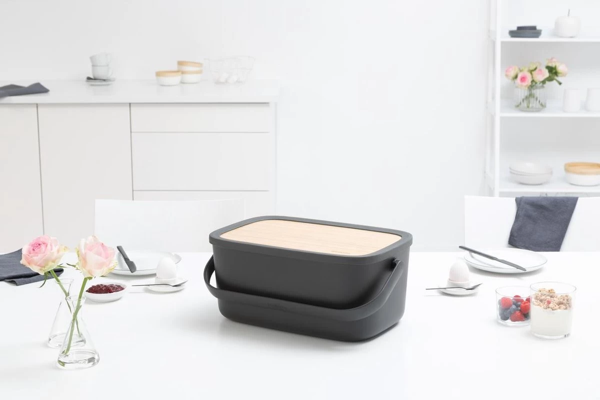 Brabantia Nic Broodtrommel – Met Bamboe Deksel – Dark Grey